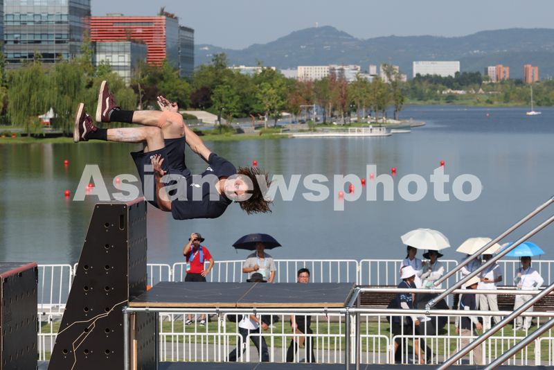 2025年8月12日,成都世运会跑酷男子自由式比赛在兴隆湖湖滨赛场举行,中国选手富思达进入决赛,日本选手Shiohata Mutsuhiro、法国选手Hitz Eloan与美国选手Rudolph Shea分获金银铜牌。