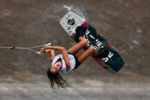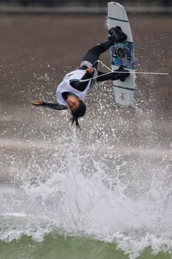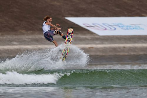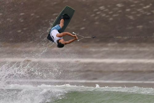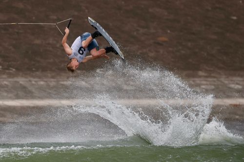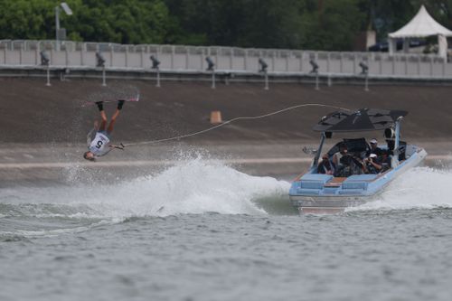 2025年8月8日下午,成都三岔湖马鞍山比赛场,第12届世界运动会尾波滑水自由式男女组资格赛在这里举行。尾波滑水是一项结合速度、技巧与平衡的水上运动,参与者借助摩托艇的牵引,脚踏滑水板在水面滑行,做出各种翻转、跳跃等动作,极具观赏性。成都世运会滑水项目设有尾波滑水、尾波冲浪、索道滑,赛程为期3天。参赛运动员共88名,男女各44名。