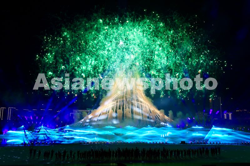 8月7日拍摄的开幕式上的焰火表演。