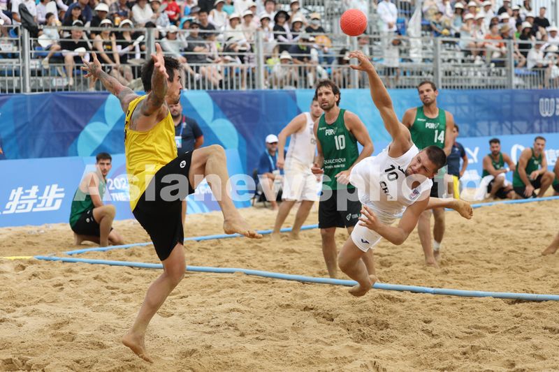 2025年8月9日,成都世运会男子沙滩手球预赛在兴隆湖沙滩赛场举行,葡萄牙队2-0胜克罗地亚队。