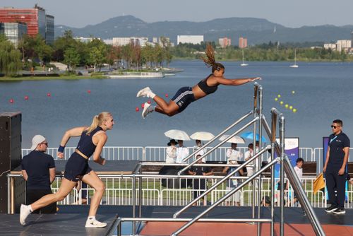 2025年8月12日,成都世运会跑酷女子竞速赛在兴隆湖湖滨赛场举行,瑞典运动员Tibbling Miranda、荷兰运动员Man Noa与阿根廷运动员Banchoff Tzancoff Sara分获金银铜牌。