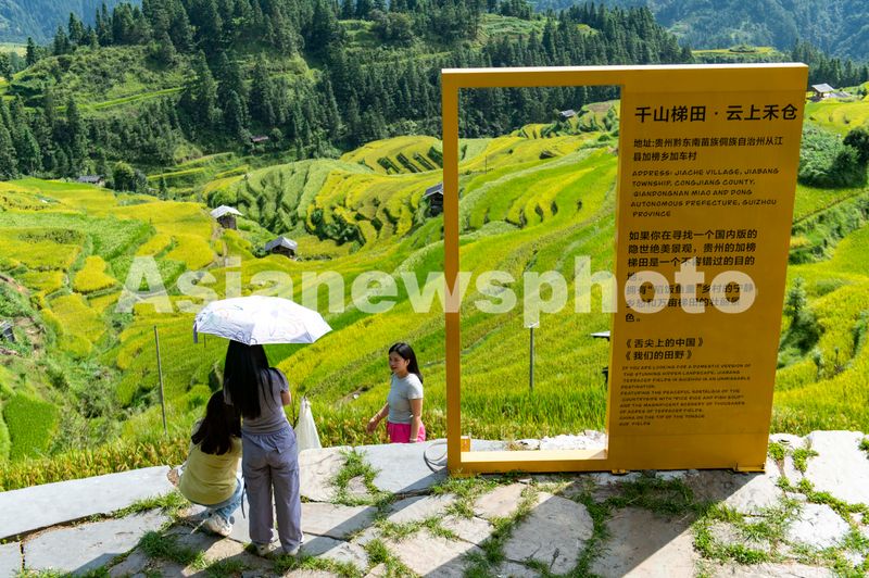 2025年8月24日,游客在贵州省从江县加榜梯田游玩。