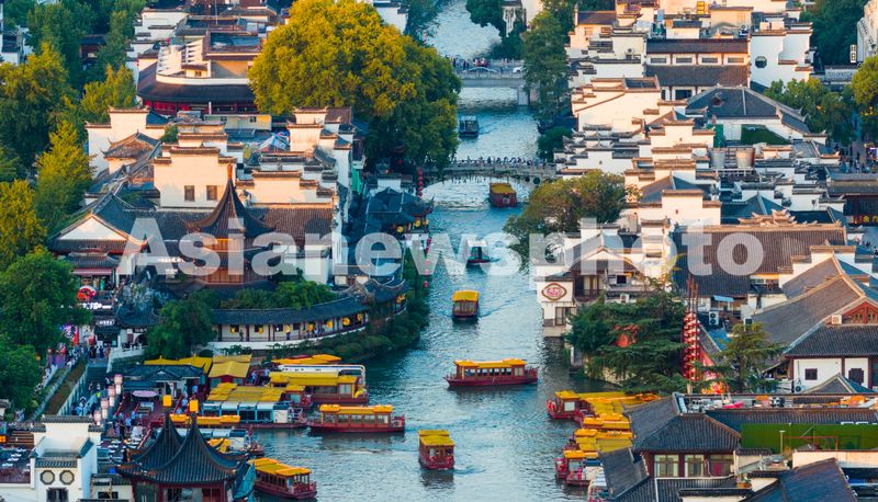 2025年8月28日,人们乘坐画舫游览江苏省南京市秦淮区夫子庙秦淮风光带。近年来,南京市秦淮区以商文旅融合为轴,赋能多元旅游业态,联动休闲、观光、美食和购物资源,推动品牌、商家、街区“点、线、面”相结合,激发城市消费的新活力。