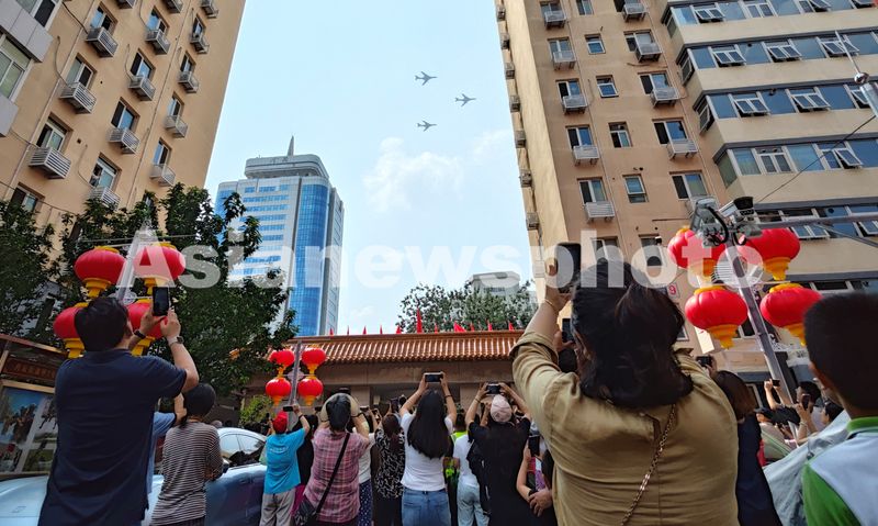 市民在拍摄空中梯队。