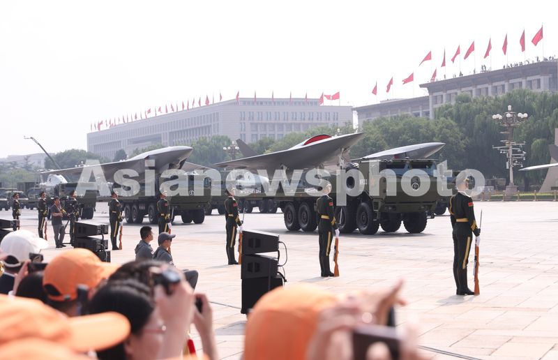 空中无人作战方队接受检阅。