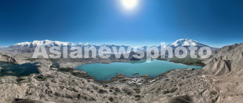 图片说明:2025年8月27日,空中俯瞰喀拉库勒湖澄澈的湖水中皎洁的冰山倒影其中,景色十分迷人。