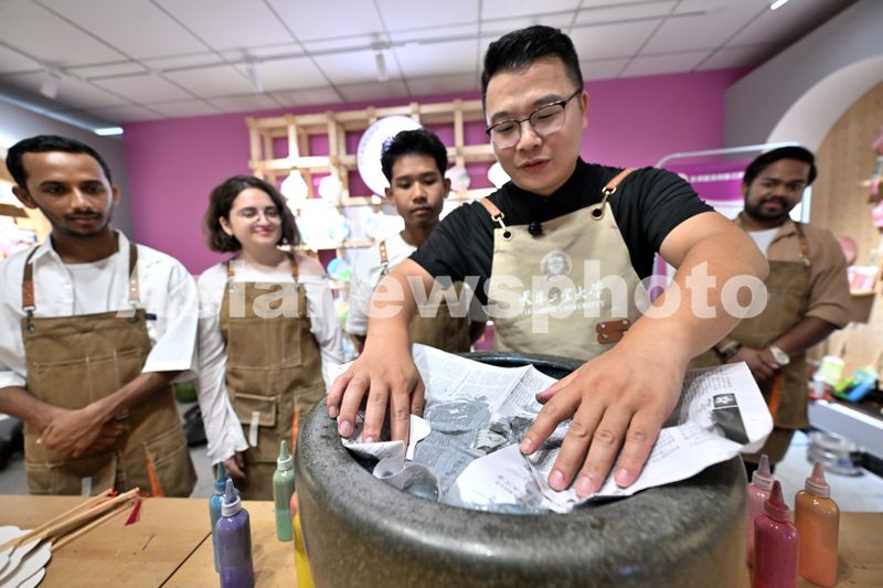 在工作室中,郑勇轻抚一件新完成的陶胎漆器,犀皮漆层下跳刀纹的律动隐约可见。这件融合“八千年技艺”的作品即将奔赴下一场国际展览。当流光溢彩的漆扇握在不同肤色的手中,人类文明交融互鉴的故事便书写了新的篇章。