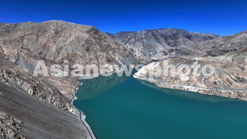 图片说明:2025年8月26日,航拍新疆维吾尔族自治区喀什地区塔县境内的班迪尔蓝湖冷艳而震撼。