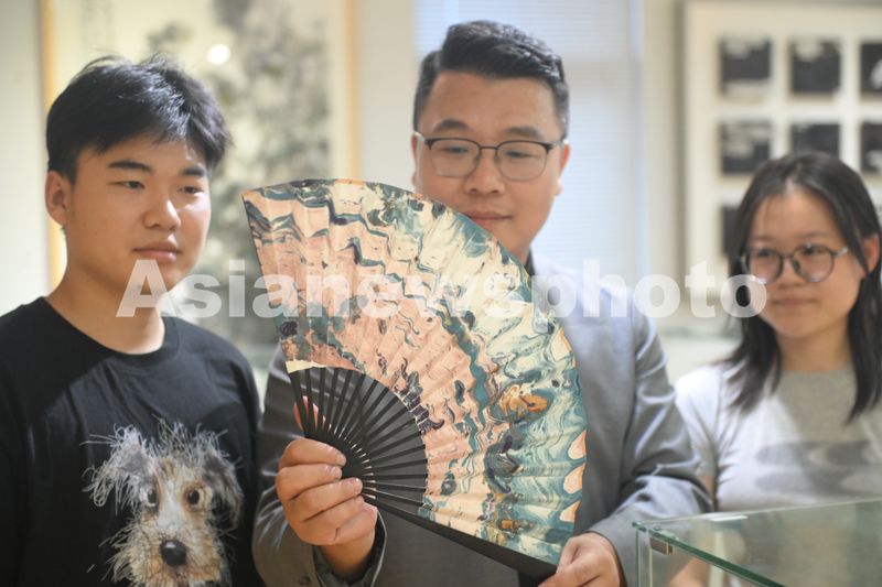 在上合峰会新闻中心非遗展示区,郑勇的漂流漆体验成为焦点。外国嘉宾轻触水面,瞬间捕捉由漆液形成的东方画卷。俄罗斯记者安杰莉娅屏息凝神,第一次触摸到了八千年中国漆艺的温度。阿塞拜疆总统新闻处官员萨尔维娜兹欣赏着两个不同图案的扇面,爱不释手。短短几小时,展台上便摆满如晚霞、似星云、若飞天的漆扇。萨尔维娜兹将漆扇迎光转动,流动的光泽让她看到了文明对话的具象表达。