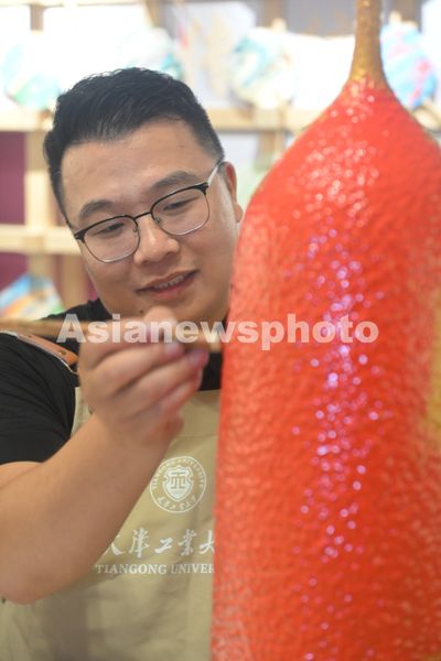 2025年7月31日,郑勇教授在给陶胎漆器上色