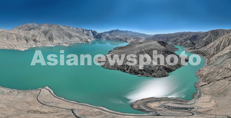 图片说明:2025年8月26日,航拍新疆维吾尔族自治区喀什地区塔县境内的班迪尔蓝湖冷艳而震撼。
