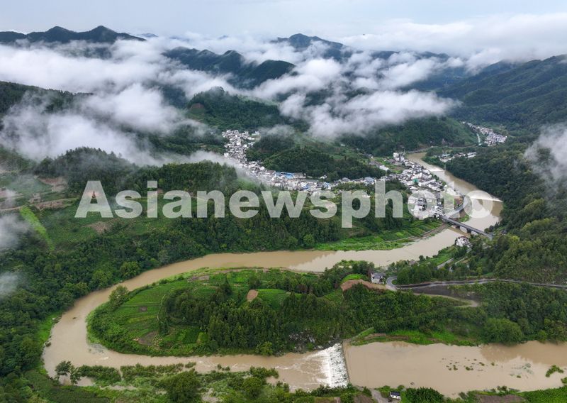 2025年9月9日,在安徽省黄山市歙县杞梓里镇坡山村拍摄的烟雨流云美景。