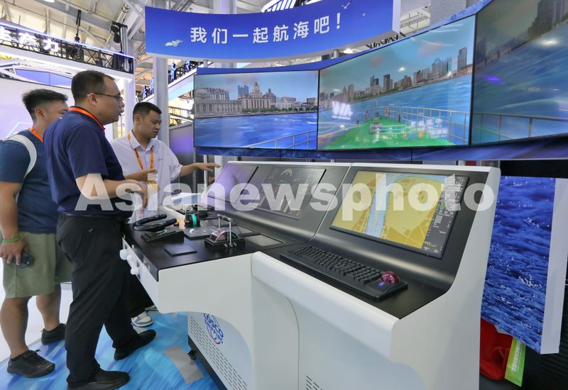 2025年9月11日,观众在2025年服贸会上体验船舶驾驶模拟器。