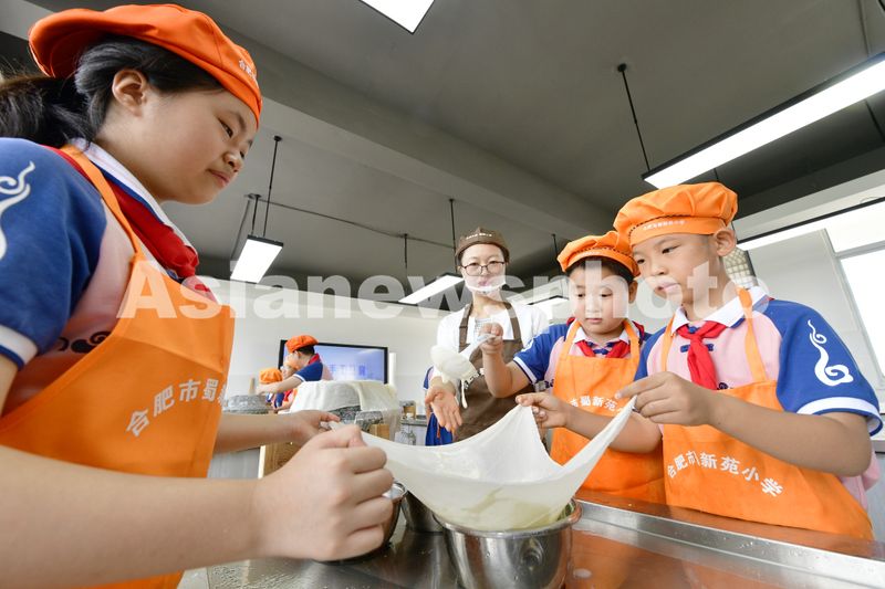 安徽合肥:小学生“豆腐坊”里体验豆腐文化 查看组图
