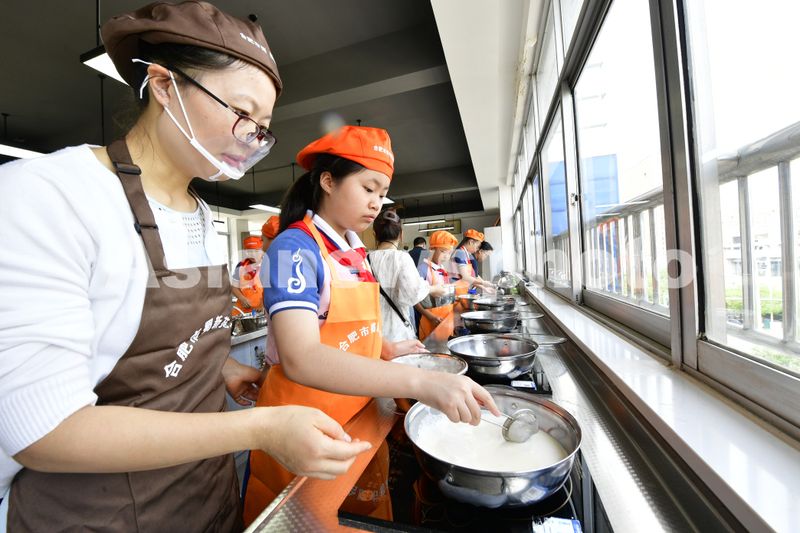安徽合肥:小学生“豆腐坊”里体验豆腐文化 查看组图
