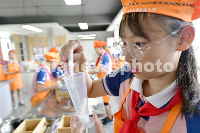 图片说明:2025年9月15日,在安徽省合肥市蜀山区蜀新苑小学“豆腐坊”里,一名学生在调制点卤卤水。