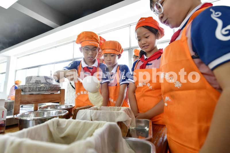 安徽合肥:小学生“豆腐坊”里体验豆腐文化 查看组图