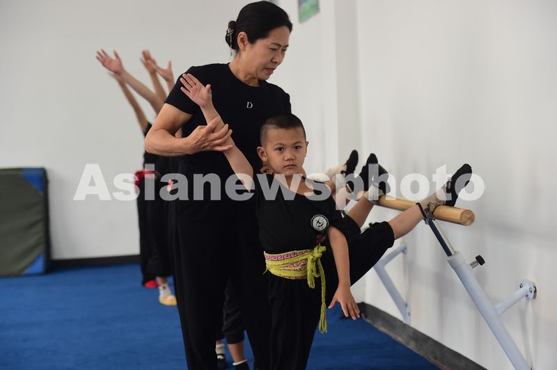 2025年9月18日,吴桥县刁家班杂技小院里,孩子们在练习基本功。