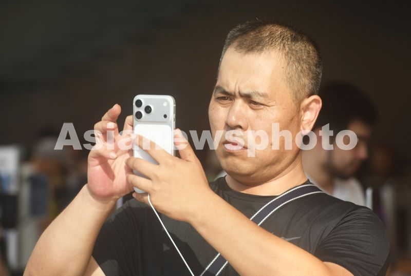 2025年9月19日, “果粉”在苹果杭州旗舰店内体验iPhone17。