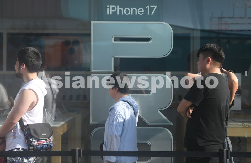 2025年9月19日, 苹果新款iPhone17正式开卖,苹果杭州旗舰店一早就有大批“果粉”排队等待购买新款iPhone17,人气颇为火爆。