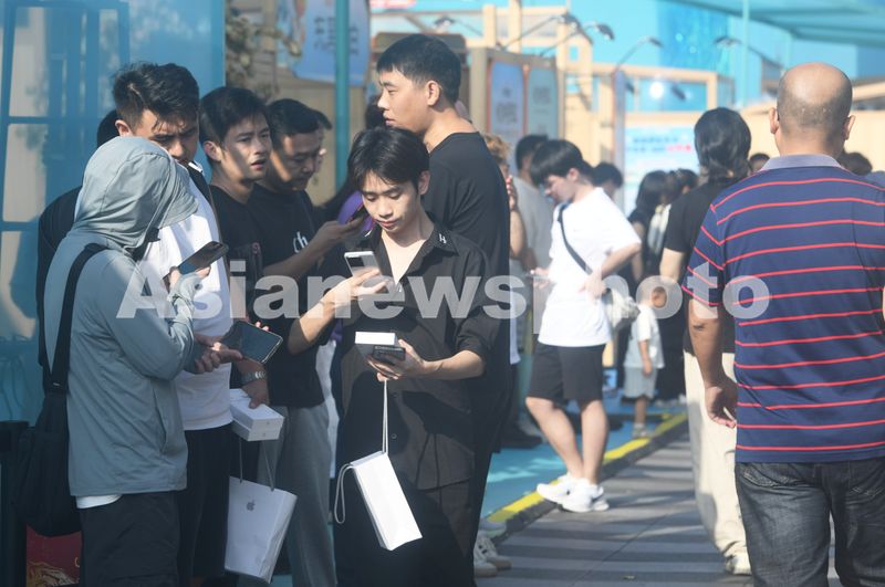 2025年9月19日, 苹果杭州旗舰店门口前“黄牛”在收购Phone17。