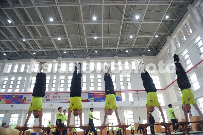 2025年9月18日,吴桥杂技艺术学校的孩子在练习基本功。
