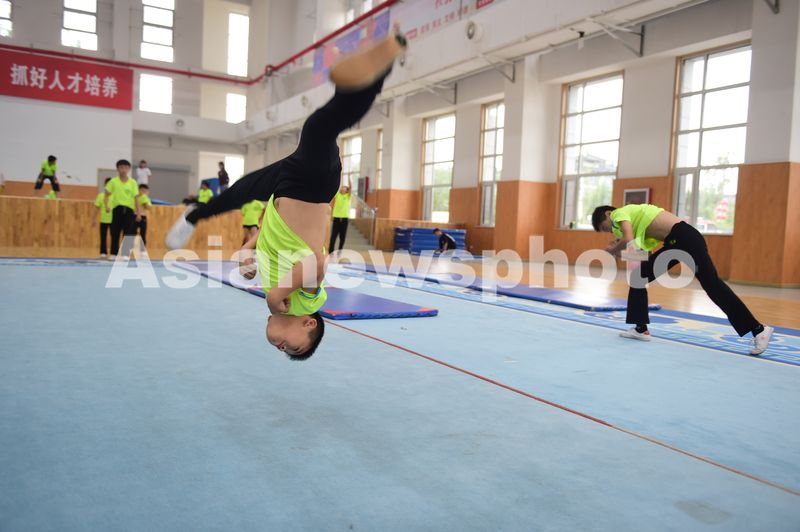 2025年9月18日,吴桥杂技艺术学校的孩子在练习基本功。
