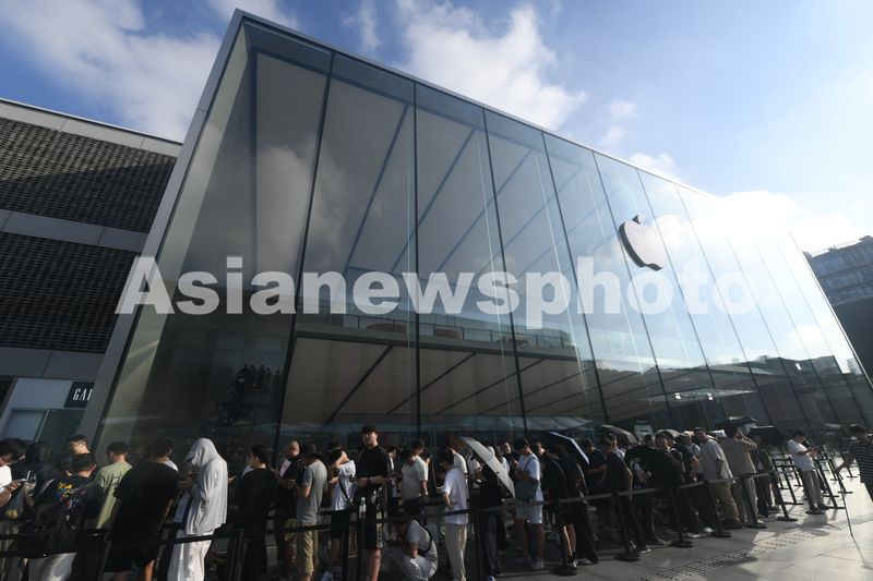 2025年9月19日, 苹果新款iPhone17正式开卖,苹果杭州旗舰店一早就有大批“果粉”排队等待购买新款iPhone17,人气颇为火爆。
