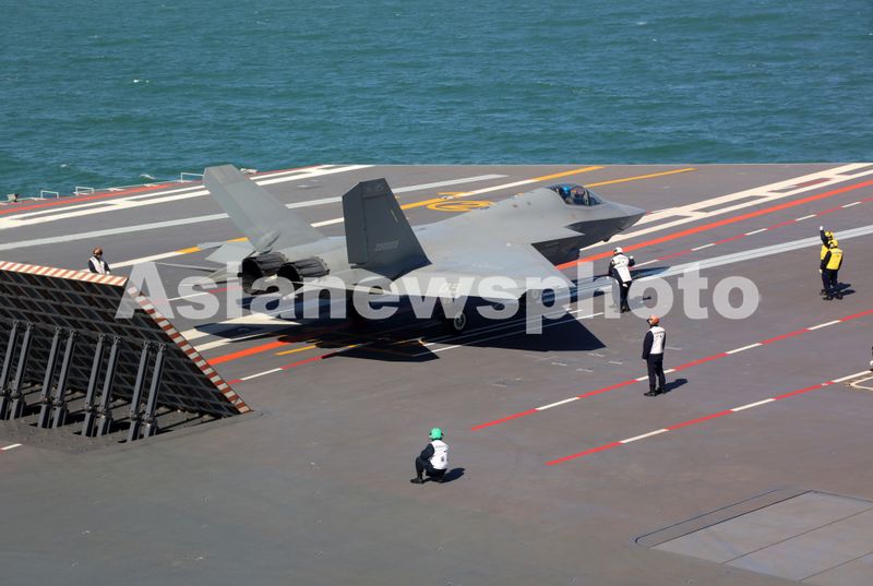 歼-35舰载战斗机在海军福建舰电磁弹射起飞。李唐 摄
