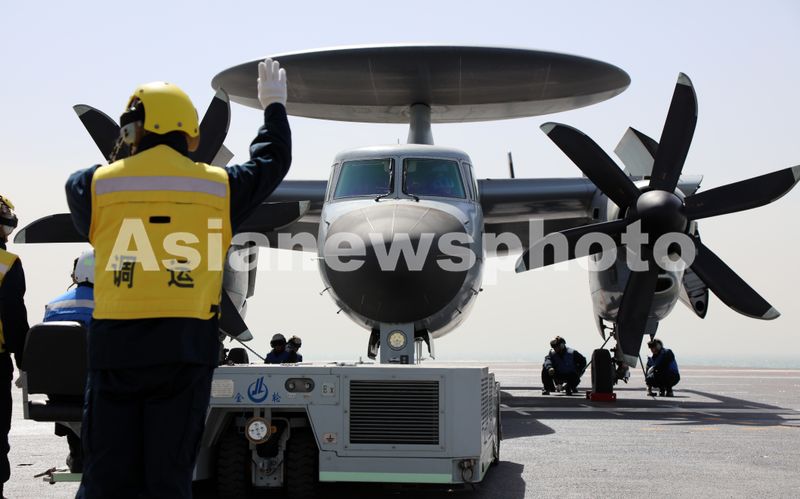 福建舰官兵在转运空警-600舰载预警机。李唐 摄