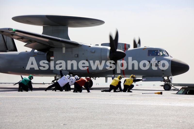 空警-600舰载预警机在海军福建舰电磁弹射起飞。这是起飞助理做出放飞手势。李唐 摄