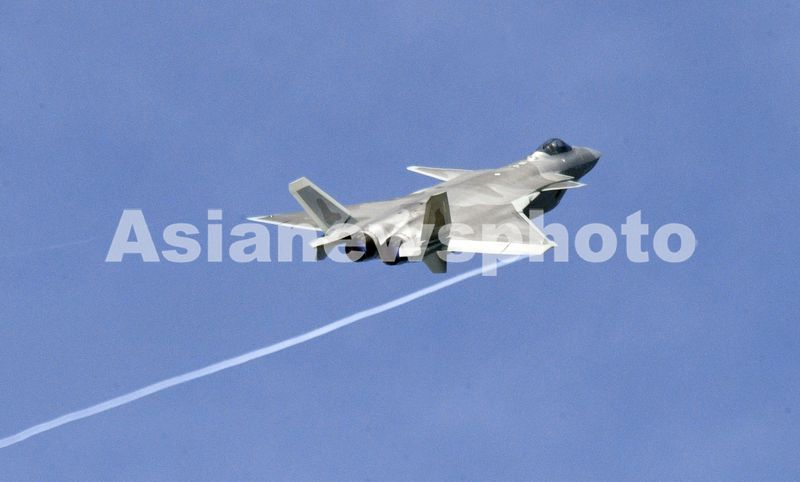 图片说明:歼-20战机飞行表演中,翼梢产生涡流拉出一条白线。