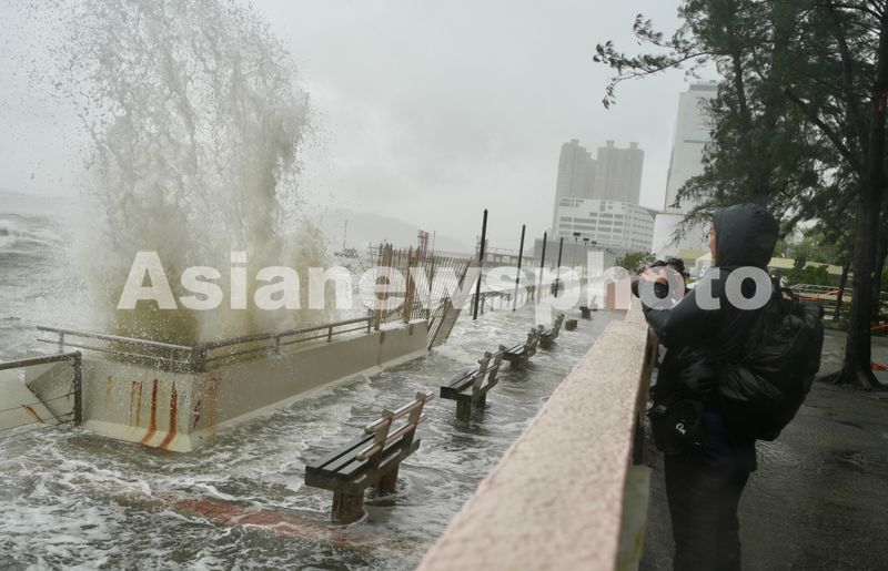 9月24日上午,香港岛东区杏花邨,海浪不断拍打岸边。
