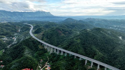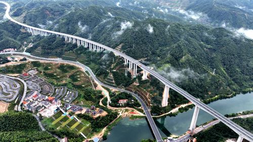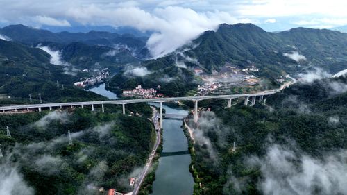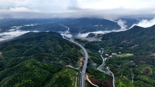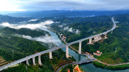 图片说明:2025年9月25日,江西省吉安市遂川至赣州市大余高速公路(遂大高速),似巨龙蜿蜒于青山绿水间,桥梁跨河越谷,在云雾缥缈中气势恢宏。