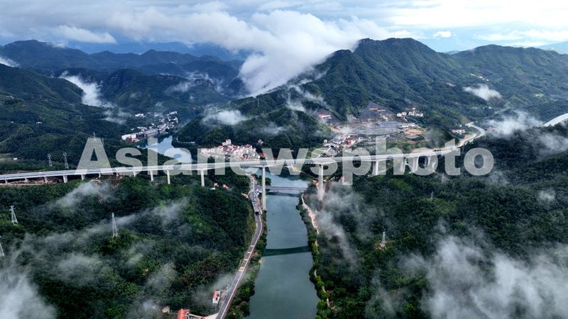 图片说明:2025年9月25日,江西省吉安市遂川至赣州市大余高速公路(遂大高速),似巨龙蜿蜒于青山绿水间,桥梁跨河越谷,在云雾缥缈中气势恢宏。