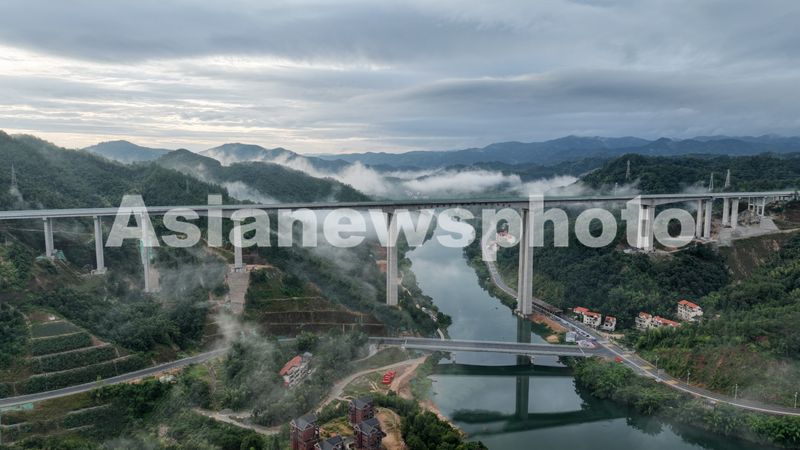 图片说明:2025年9月25日,江西省吉安市遂川至赣州市大余高速公路(遂大高速),似巨龙蜿蜒于青山绿水间,桥梁跨河越谷,在云雾缥缈中气势恢宏。