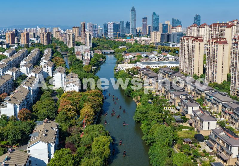 浙江绍兴:76艘乌篷船竞渡浙东运河迎国庆 查看组图