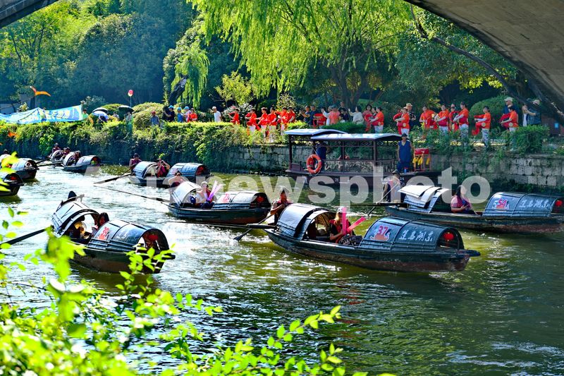 浙江绍兴:76艘乌篷船竞渡浙东运河迎国庆 查看组图