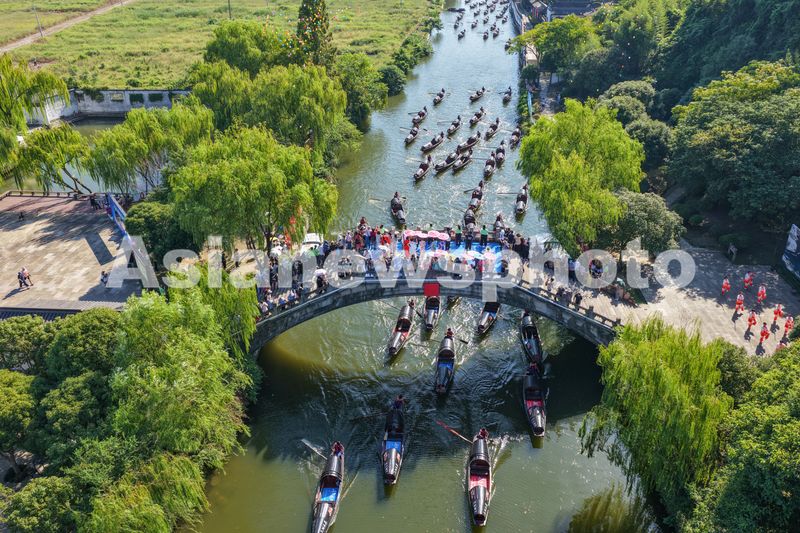 浙江绍兴:76艘乌篷船竞渡浙东运河迎国庆 查看组图