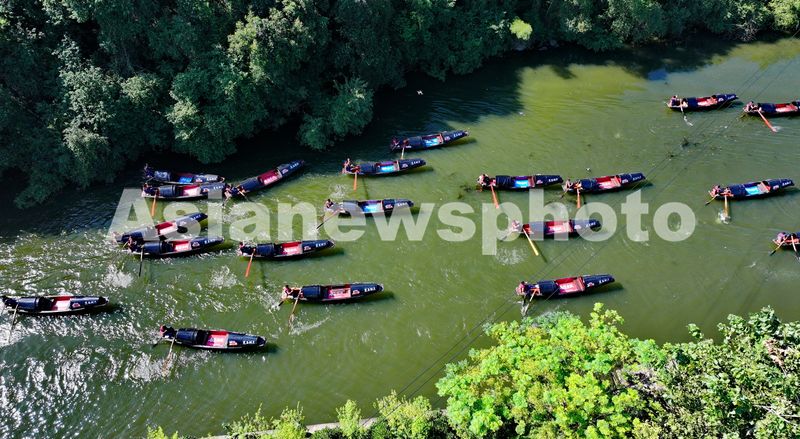 浙江绍兴:76艘乌篷船竞渡浙东运河迎国庆 查看组图
