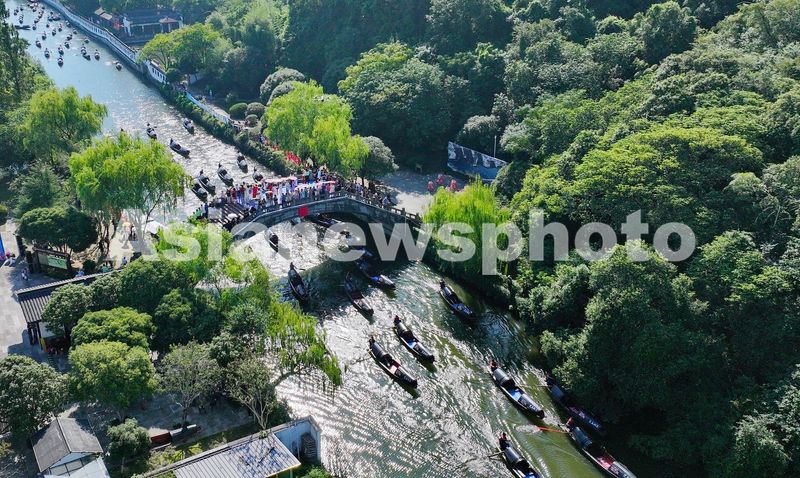 浙江绍兴:76艘乌篷船竞渡浙东运河迎国庆 查看组图