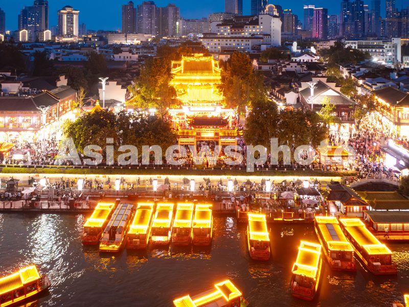 图片说明:10月4日,游客在南京夫子庙景区游览。