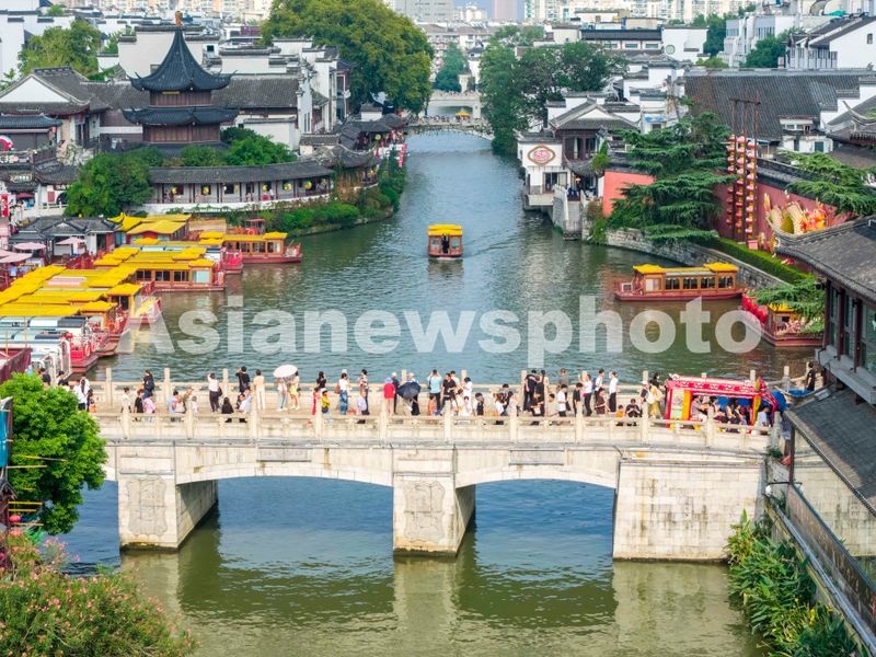 图片说明:2025年10月5日,游客在南京夫子庙景区参观游玩。