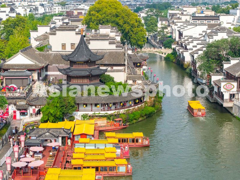 图片说明:2025年10月5日,游客在南京夫子庙景区参观游玩。