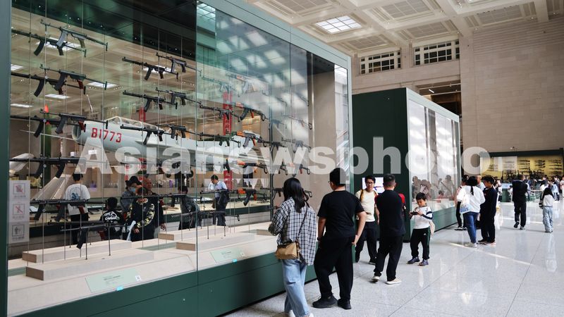 图片说明:2025年10月7日,观众参观军事博物馆展陈品。