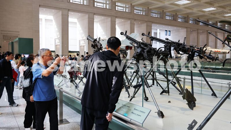 图片说明:2025年10月7日,观众参观军事博物馆展陈品。