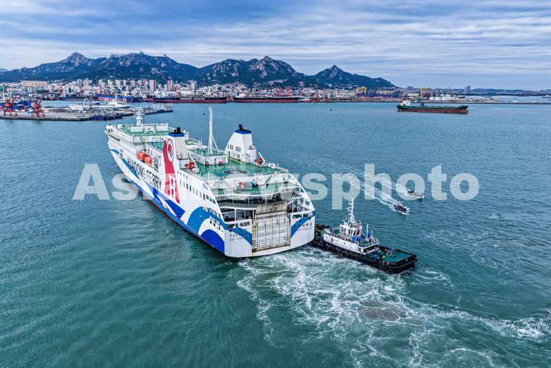 2025年10月9日,山东省荣成市石岛管理区石岛新港口岸,外籍客货班轮“华东明珠8”号在有序靠港。