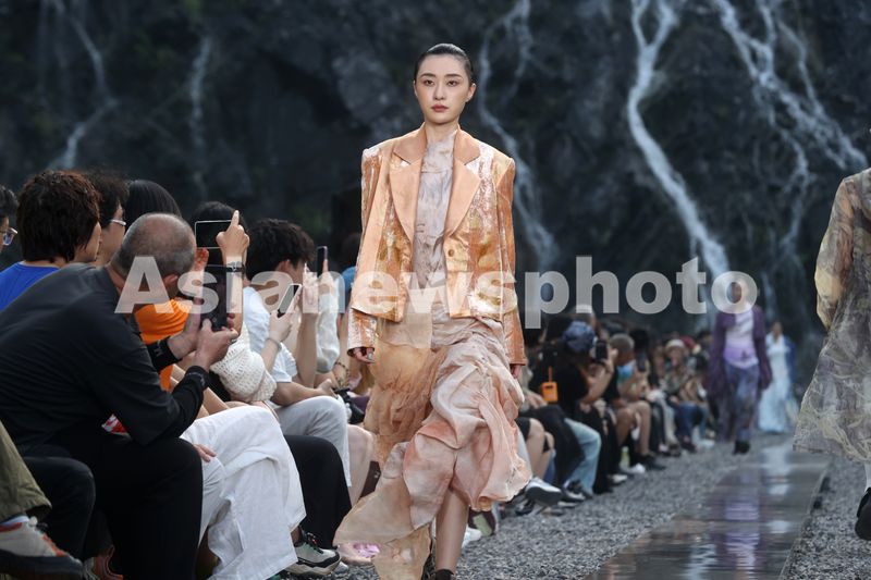 2025年10月12日,一场植物染服饰“时装秀”在浙江省湖州市德清县莫干山镇五四村矿坑举行,模特们身着植物染元素的服饰走秀,将传承与创新相融合,表现了对新面料、新工艺的探索与应用。