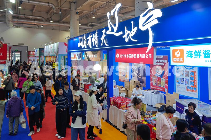 2025年10月17日,众多市民在辽宁大连国际农业博览会上参观选购农副产品。