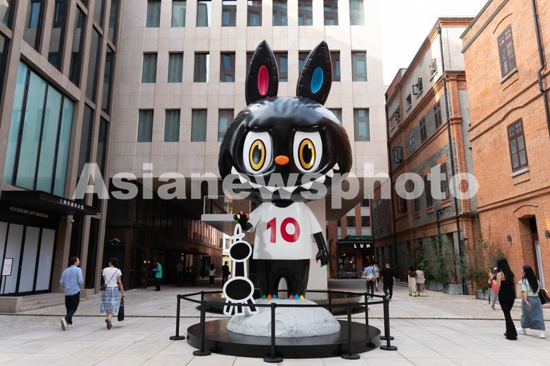 2025年10月15日,上海外滩源正在举办LABUBU十周年巡展,广场上的拉布布雕塑吸引众多粉丝打卡拍照。